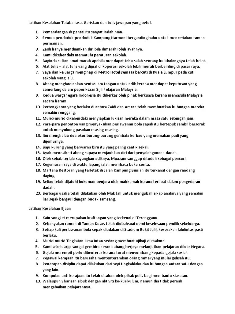 Latihan Kesalahan Tatabahasa Tahun 4 : 80 Kesalahan Tatabahasa. Selari dengan perkembangan pesat teknologi digital, kementerian pendidikan malaysia akan menggunakan teknologi dan kandungan digital dalam dalam bidang pendidikan. Pengenalan buku teks digital akan diperkenalkan di sekolah menengah terlebih dahulu, kemudian di sekolah rendah. Menyatakan sasaran (manusia, haiwan, unsur abstrak).